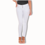 Jean fajisculpture (faja interna) en denim blanco con bolsillos funcionales en el frente. Tiene corte corazón con bolsillos funcionales en el posterior.