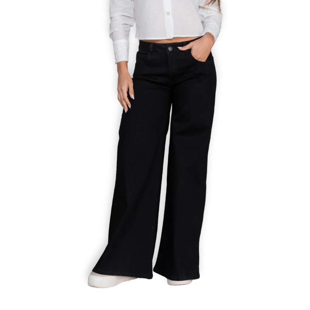 Jeans Palazzo Negro Tiro Alto – T22077134