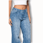 Jeans Wide Leg Animal Print Pitón – 100% Algodón, Estilo Colombiano Audaz