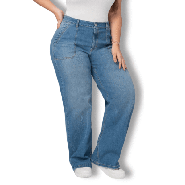 Jeans Wide Leg Azul Claro para Mujer Talla Grande – Diseño Colombiano